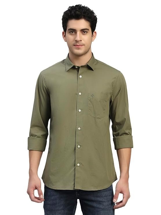 Cantabil Men’s Solid Full Sleeves Spread Collar Casual Shirt