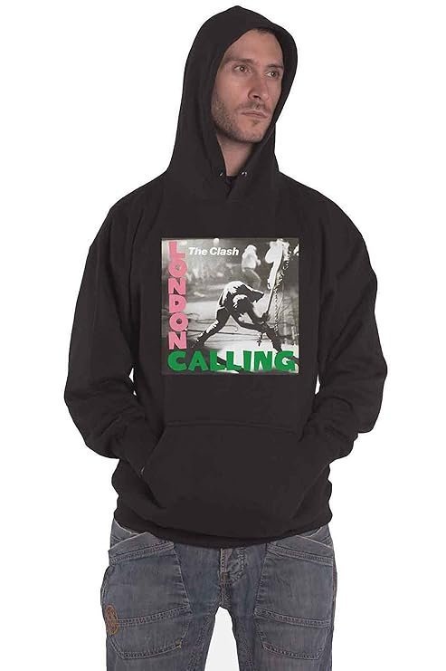 Clash Hoodie London Calling Band Logo Official Mens Black Pullover