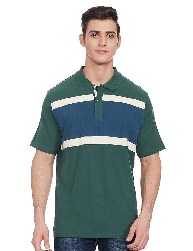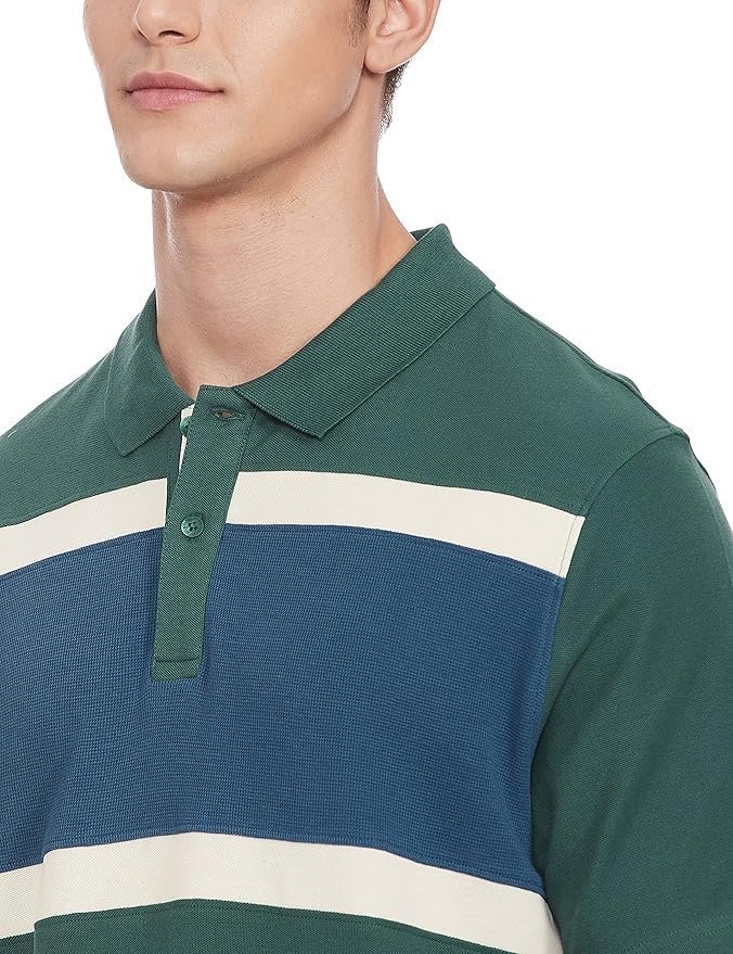 Marks & Spencer Mens Striped Cotton Polo Neck Regular Fit T-Shirt