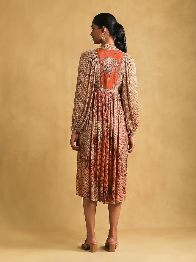 Titu Kumar Rust Micro Print Embroidered Dress